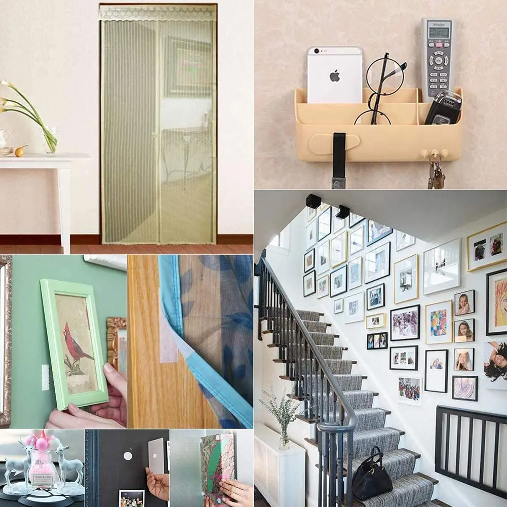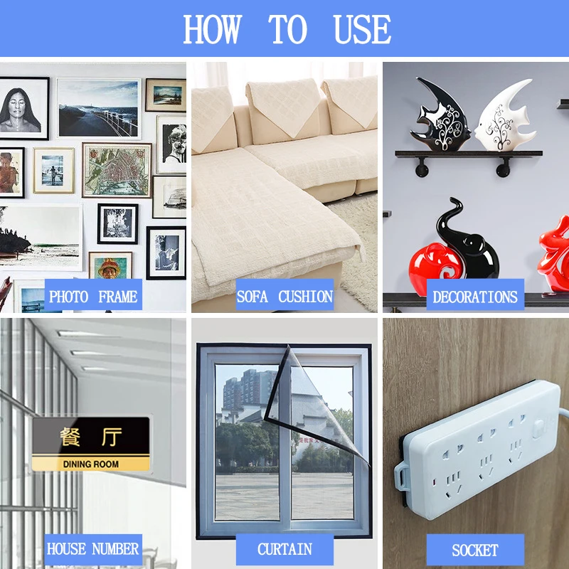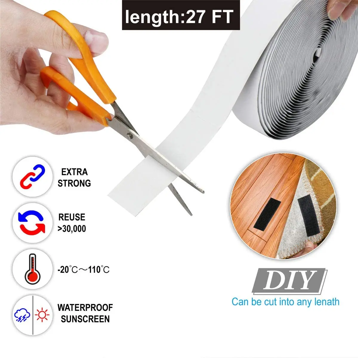 These self adhesive hook and loop strips stick things everywhere with it,both indoor and outdoor use, keeping your home, office, classroom, RV, workshop in order, and making your life easy and convenient, such as hanging remote controls, tools, routers, kitchen organizing, fixed rugs, sofa cushions, securing lamps, flowerpots, vases, decorating classrooms, mounting solar lights or applying in crafts.