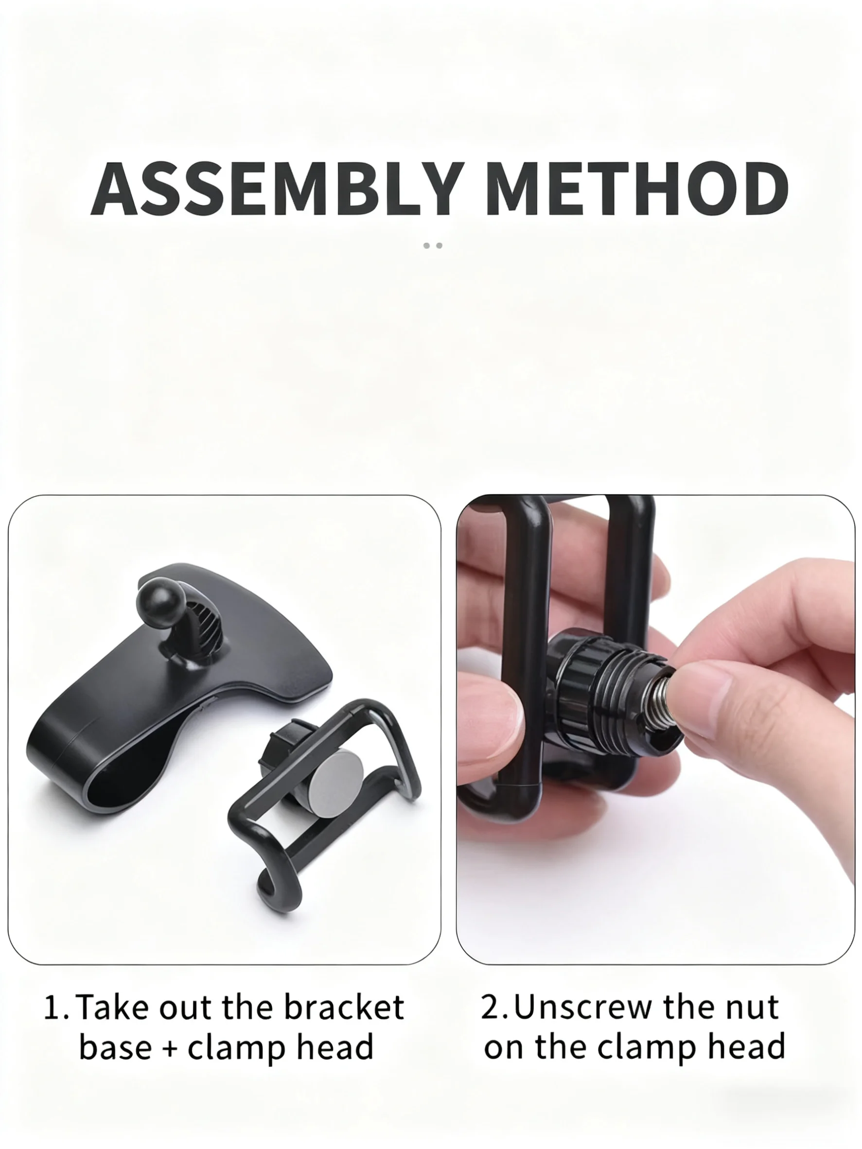 This dashboard clip car mount is more convenient and can be used for car dashboards, rearview mirrors, and sunshades. It can also be clamped at the edge of a table and used as a desktop phone stand.